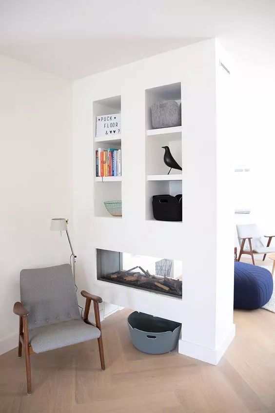 不喜欢置物架同时自家墙体又比较厚就可以考虑考虑壁龛,说白了就是往自家墙上打几个洞。壁龛多设计于客厅,除了可以收纳置物之外,灯光设计也是壁龛的亮点之一,储物能力取决于你打洞的大小。