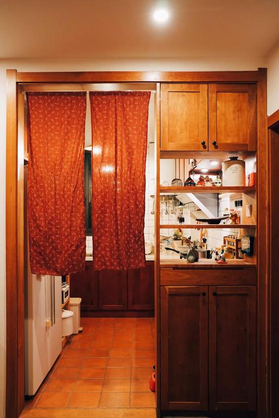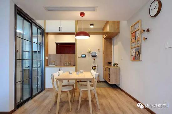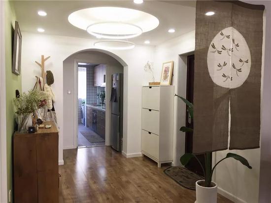 进门就是厨房的家,最先让人看到的,是每天的烟火气,所以对厨房颜值的要求极高,但如果不设置玄关,生活还是不方便,居住得久了,满地乱放的鞋子和锅碗瓢盆混杂在一起,怎么看都不顺眼。屋主帆姑娘的家,一进门就直面着一个封闭式厨房,墙体阻隔着光线,进门视角极其压抑。改造后她把厨房的非承重墙打掉,并新建了半面隔断墙,避免了入户就是客厅厨房的尴尬,让房间的开放性与私密性被兼顾。