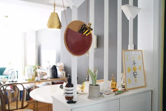 服装设计师Vista的家,进门直面餐厅,在户型改造的时候,她直接在玄关与餐厅连接的地方做了一面拱形门,凹出了小却独立的玄关。
