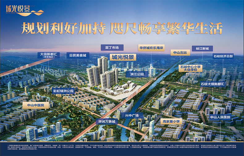 石岐总部经济区政府大力发展,百亿华侨城欢乐海岸火热建设中,马山旧改,华润万象城全面推进,众多利好蓄势爆发,【城光悦景】傲居于此,借势腾飞指日可待。
