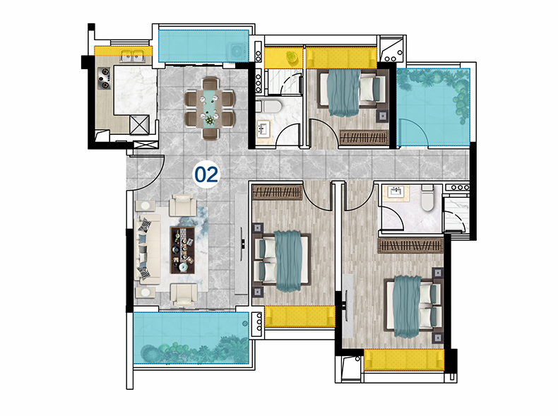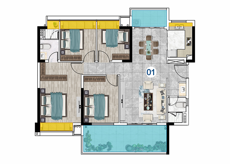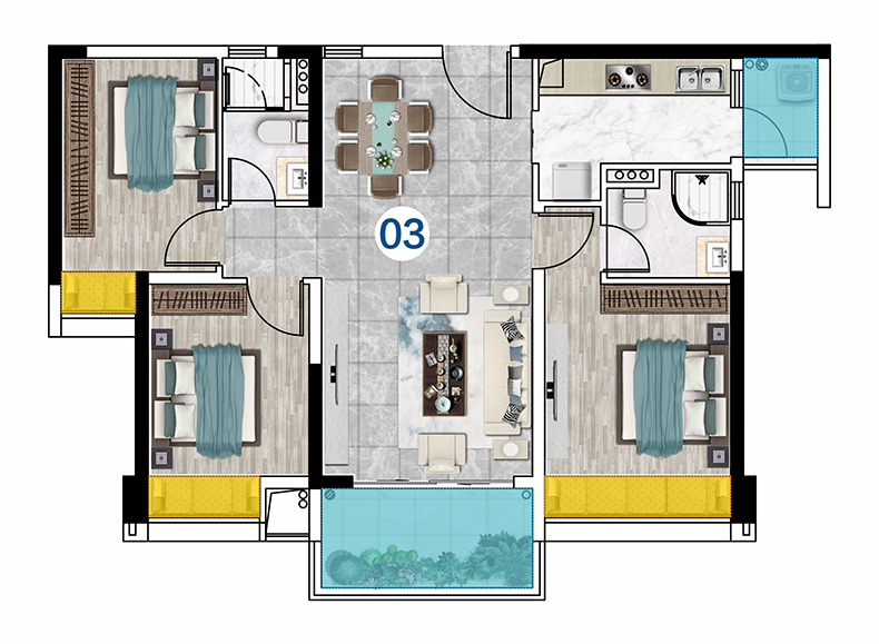 产品面积:99-140㎡三房-四房