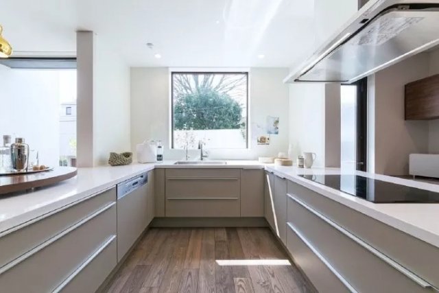 厨房的装修布局能让做饭变得更轻松,如果你家格局合理,面积合适,为了更好的利用厨房空间,推荐你设计“U”型厨房。